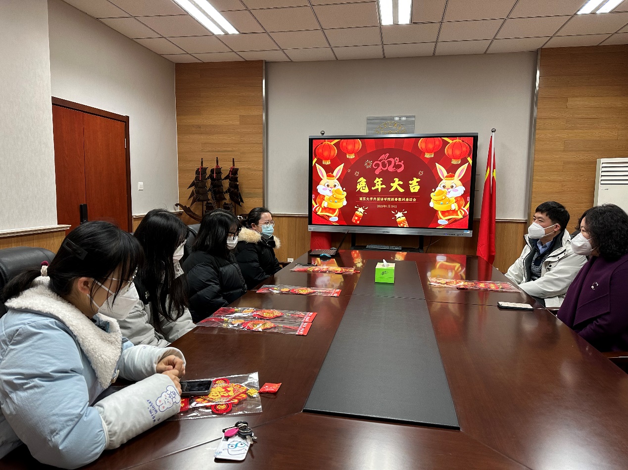 春节前夕,外国语学院在侨裕楼举行留校学生春节慰问座谈会,为留校学生送上新春祝福。学院党委书记高方、党委副书记孔剑锋、研究生辅导员龙心悦及学生代表参加座谈,师生齐聚一堂,提前庆贺春节的到来。
