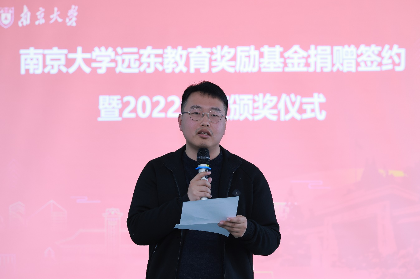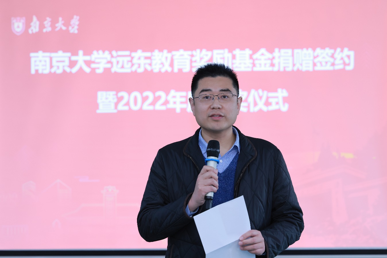 3月29日,凯发k8官网远东教育奖励基金捐赠签约暨2022年度颁奖仪式在鼓楼校区安中大楼隆重举行。远东股份资深合伙人、董事会秘书、首席行政人力资源官、远东大学执行校长邵亮出席仪式并为获奖师生颁奖。远东控股集团党政办公室主任助理康娜,远东股份总经理办公室首席行政人力资源官秘书梁毅,远东控股集团党政办公室研究生管培生李潇,凯发k8官网校友事务与发展工作处处长、教育发展基金会秘书长张锁庚,商学院党委书记刘春林,经济学院副院长、商学院校友与发展办公室主任孙宁华,管理学院副院长、商学院本科生教学与培养办公室主任贾良定,商学院党委副书记王宇伟以及获奖师生代表参加仪式。王宇伟主持仪式并介绍本次捐赠项目概况。