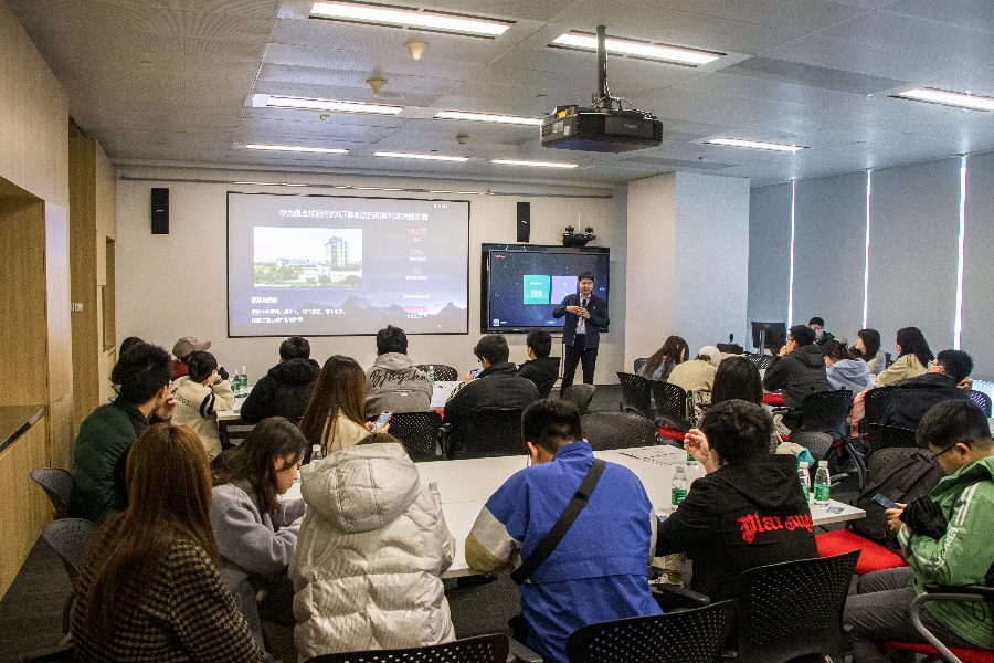 在互动环节中,大家积极提问,就员工在华为公司的工作节奏、华为公司的职场环境、员工在华为的培养与成长、以及对未来就业的选择等一系列问题与学姐进行了探讨。学姐认为华为是一家开放包容、注重技术的公司,同时也建议同学们在做职业选择和规划的时候要做好充足的调研工作,敢于踏出舒适圈,去找到适合自己的工作。