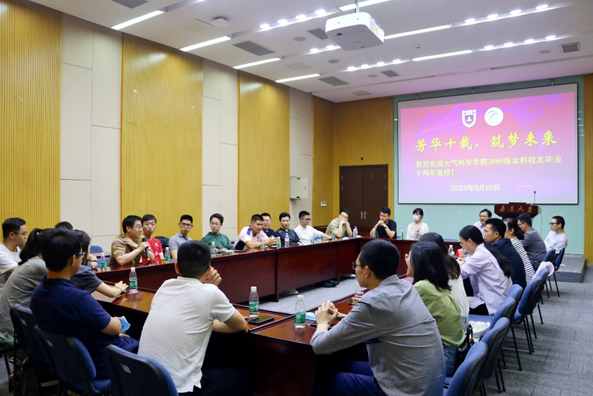 时光荏苒,岁月如梭,同学少年,重回母校。2023年5月20日下午,恰逢凯发k8官网121周年校庆日,大气科学学院举行"芳华十载,筑梦未来"2009级本科校友毕业十周年座谈会,大气科学学院党委书记林仕尧,院长助理张熠,工会主席陈兵,校友工作秘书潘姝出席座谈会。2009级校友、学院专职科研岗刘岩博士主持座谈会。