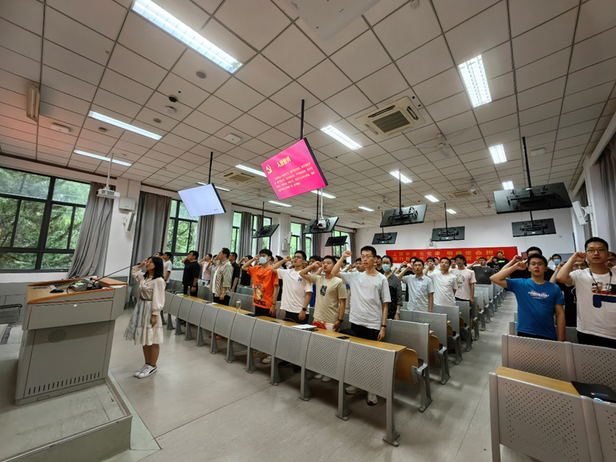 毕业生党员代表上官艳艳带领全体毕业生党员重温入党誓词,以铿锵誓言表达对党和人民的忠诚与热爱,砥砺奋进抒豪情。