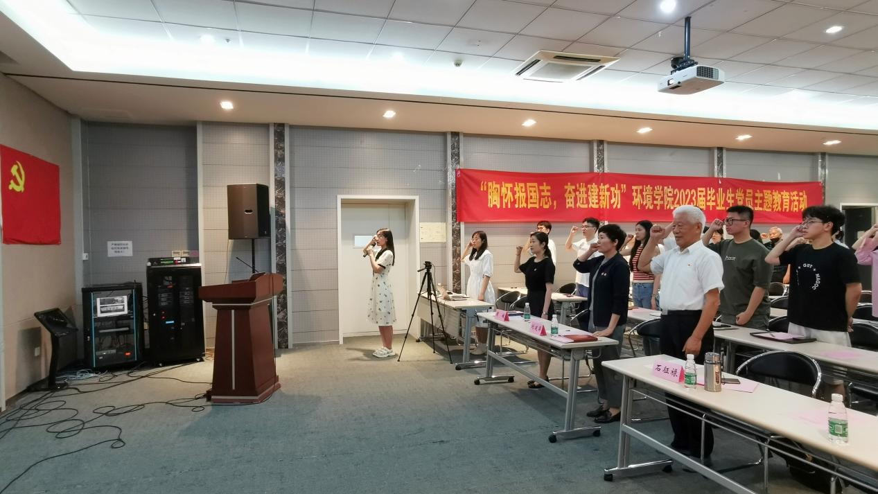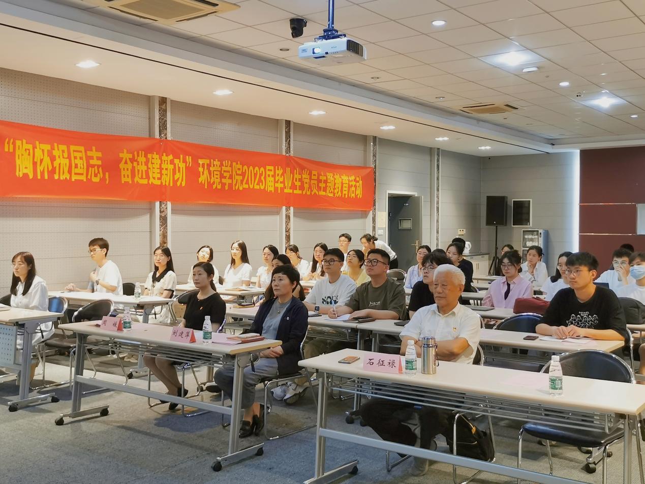为推动学习贯彻习近平新时代中国特色社会主义思想主题教育走深走实,教育引导党员传承报国为民精神、强化理想信念教育,2023年6月8日,环境学院党委开展"胸怀报国志,奋进建新功"学习贯彻习近平新时代中国特色社会主义思想主题教育暨2023届毕业生党员教育活动。学院党委书记刘建萍、退休教师党支部书记石征禄、党委秘书、辅导员、学生党支书以及全体2023届164名毕业生党员参加活动,活动由党委副书记周媛主持。