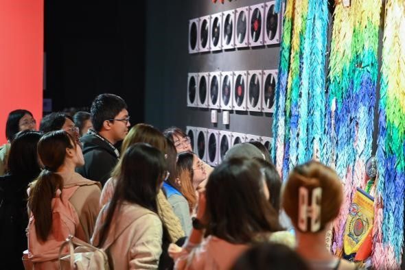 在“抗战文献”史料馆中,一面墙上陈列有数百位老兵的手印,上附有籍贯与部队番号,另一面墙上则挂满黑色胶片,内为老兵们的寄语。同学们在先烈的手印与遗音前久久驻足,默然沉思。