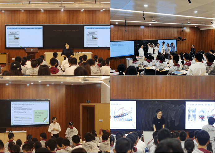 学科展示课环节,英语学科由高中部曹慧敏老师公开讲堂,讲授“friendship”主题章节。物理学科由高中部王永猛老师引领示范,讲解与科学实验相结合使加速度的概念具体形象化。
