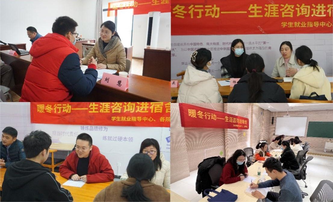 12月28日中午,在就业中心刘慧主任带领下,来自部门和院系的18位党员生涯咨询师进驻鼓楼校区和仙林校区宿舍组团,开展“暖冬行动”——生涯咨询进宿舍活动,为广大同学提供一对一简历指导和职业咨询服务。在鼓楼校区南青格庐多功能教室,仙林校区2栋、3栋及17栋学生宿舍一楼自习室等4个咨询点,先后有32位同学前来咨询。咨询议题涵盖简历修改、面试技能提升、生涯决策等内容,咨询师结合同学生涯目标与发展实际,为同学们耐心解疑答惑、赋能助力。同学们纷纷主动添加咨询师微信,期待后续更多咨询交流。