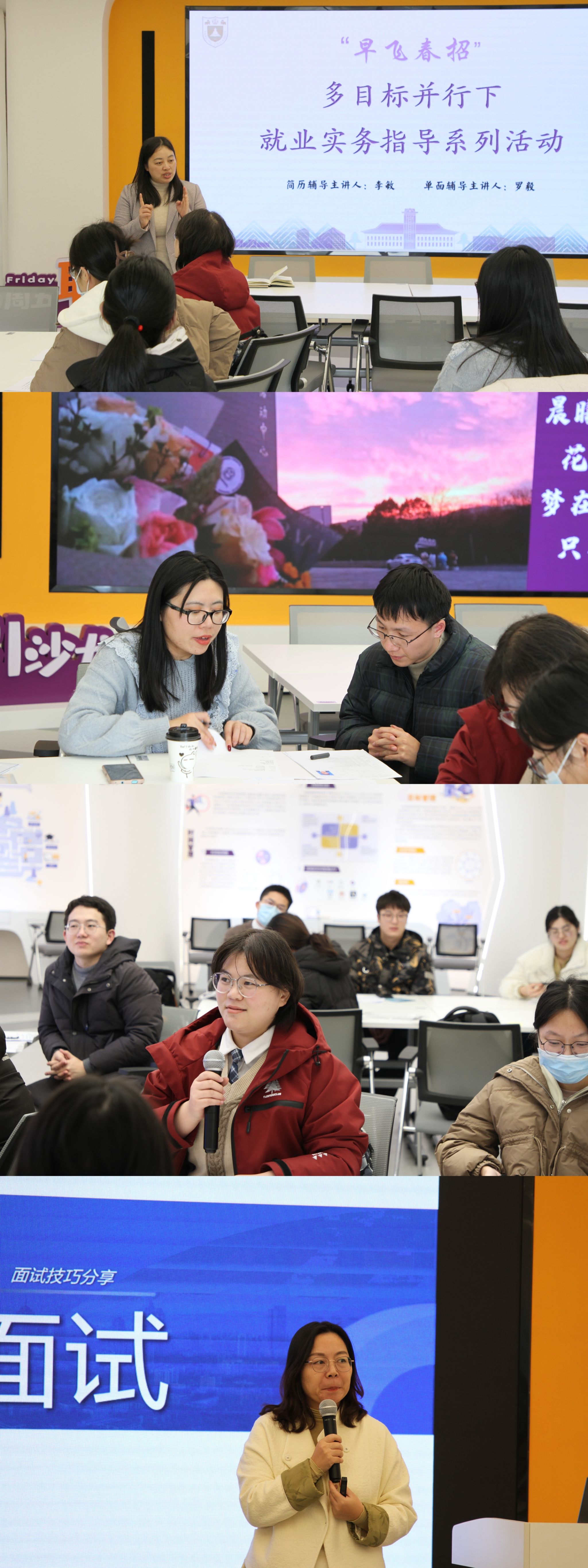 走过如火如荼的秋招,历经寒窗苦读的考研考公,2024届毕业生即将迎来多目标并行的寒假,或备战复试,或瞄准春招,或期待更加理想的就业与深造offer,这个寒假意义不一般。为帮助同学们尤其是毕业生了解就业形势,更好利用寒假黄金时段增加生涯积累,提升求职就业竞争力,学生就业指导中心近期联合各院系开展“多目标并行下就业实务指导系列活动”。就业中心全体班子成员、党员骨干及各院系副书记、辅导员代表倾情参与。