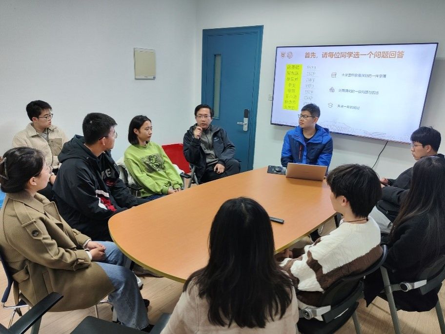 12月6日,以“畅谈交流促成长,凝心聚力共前行”为主题的师生会谈系列活动的第三场师生交流会在3栋南青格庐召开。本次交流会邀请了学院党委副书记孔令红老师、二班班主任岳涛老师、三班班主任汤琨老师和辅导员裴玉老师参与。会议伊始,针对现阶段面临的疑问困惑与对未来的规划,参会同学依次进行了提问和分享。不少同学表达了对未来发展方向的迷茫,因为看不清未来而焦虑,又因为想的太多而无法专注眼下的事情,深感行动力的缺乏;也有同学谈到了大学圈子变小带来的社交压力,渴望寻找志同道合的朋友一起为目标而奋斗。此外,很多同学也回顾了大学生活中给他留下深刻印象的经历:篮球队的参赛经历让他明白只有在遭遇挫折时不放弃,在沉淀中积蓄力量,才更加能体会到夺得冠军时别样的喜悦;电子设计竞赛则夯实了专业基础,更锤炼了同学间的友谊,也让大家收获“细节决定成败”的宝贵经验。在听完同学们的分享后,几位老师也分别给出自己恳切的建议。岳涛老师和汤琨老师建议同学们向内探索,寻找自己的兴趣点,不负宝贵的青春年华,积极尝试,在不断探索中找到自己热爱的事业为之奋斗下去。孔令红老师则介绍了学院本科就业的相关情况,进一步消解了相关方向的信息差,呼吁同学们可以向外探索,了解未来自己可能会从事哪些职业、有什么选择,进一步明确当下需要的准备。最后,裴玉老师建议同学们把握当下,增强自己的行动力,保持向上的势头和动力,终能在顶峰相见。