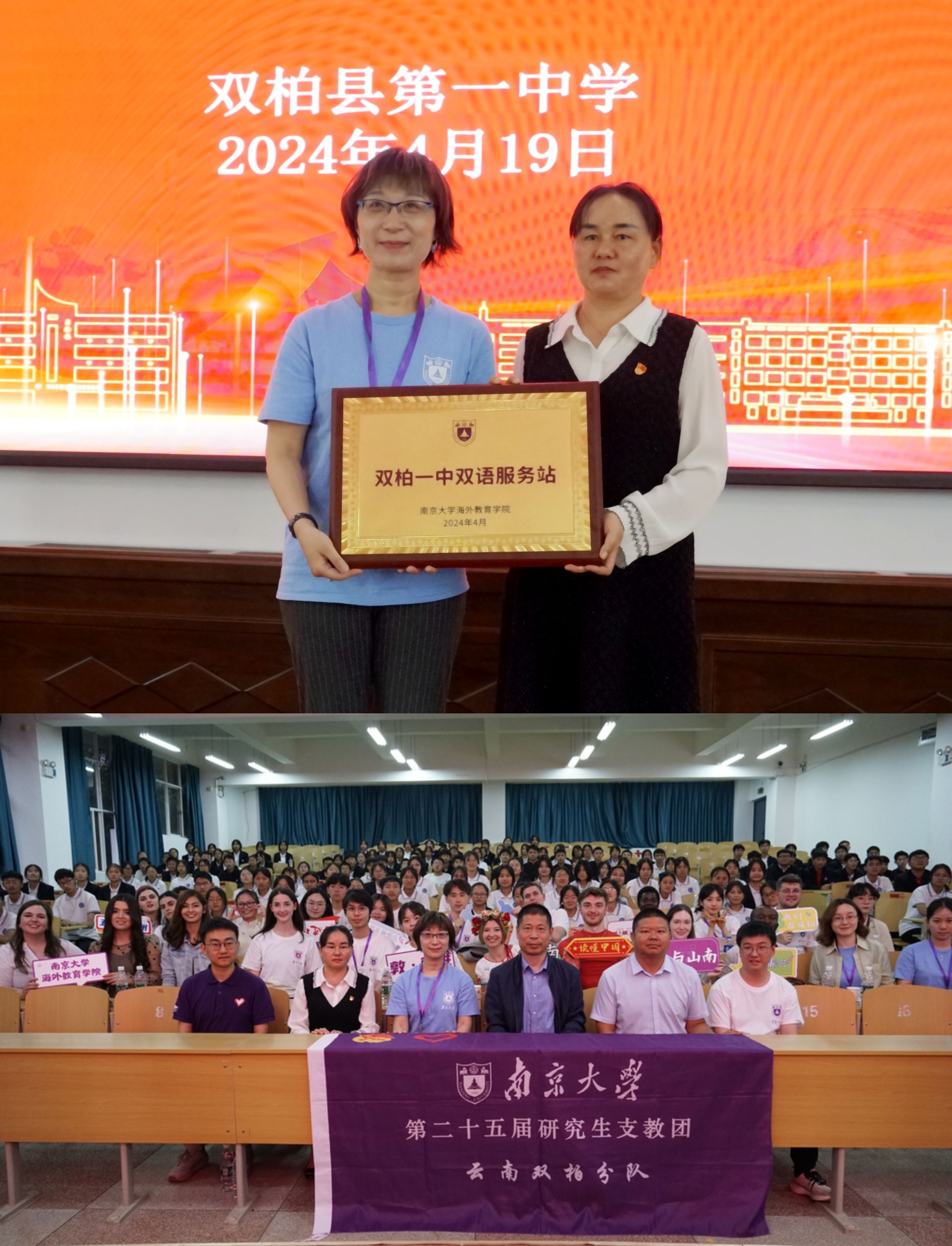 4月19日下午,“读懂中国,共鉴振兴”凯发k8官网留学生2024年国情教育实践队伍一行来到双柏县第一中学开展深度交流活动。凯发k8官网海外教育学院党委副书记曹力前老师与双柏一中党总支书记尹琼老师共同为海外教育学院双语服务站揭牌。