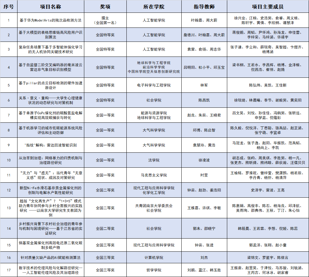 第十九届“挑战杯”全国大学生课外学术科技作品竞赛2024年度“揭榜挂帅”专项赛获奖信息