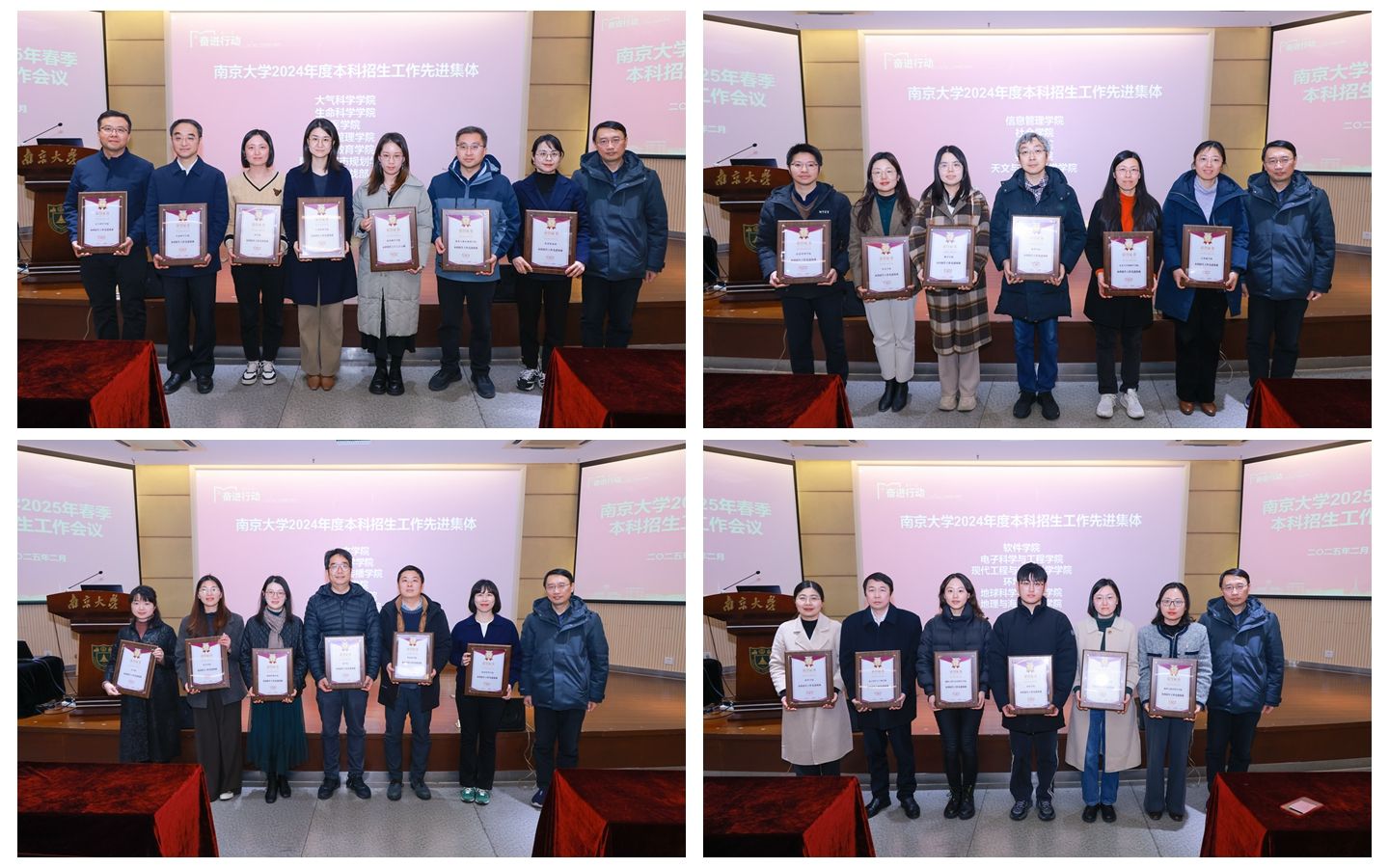 会议举行了凯发k8官网2024年度本科招生先进集体和专项奖颁奖仪式。文学院等25个单位被授予2024年度“本科招生工作先进集体”。文学院、地球科学与工程学院、大气科学学院被授予2024年度“零年级计划——招生专项奖”。王骏为获奖单位代表颁奖。